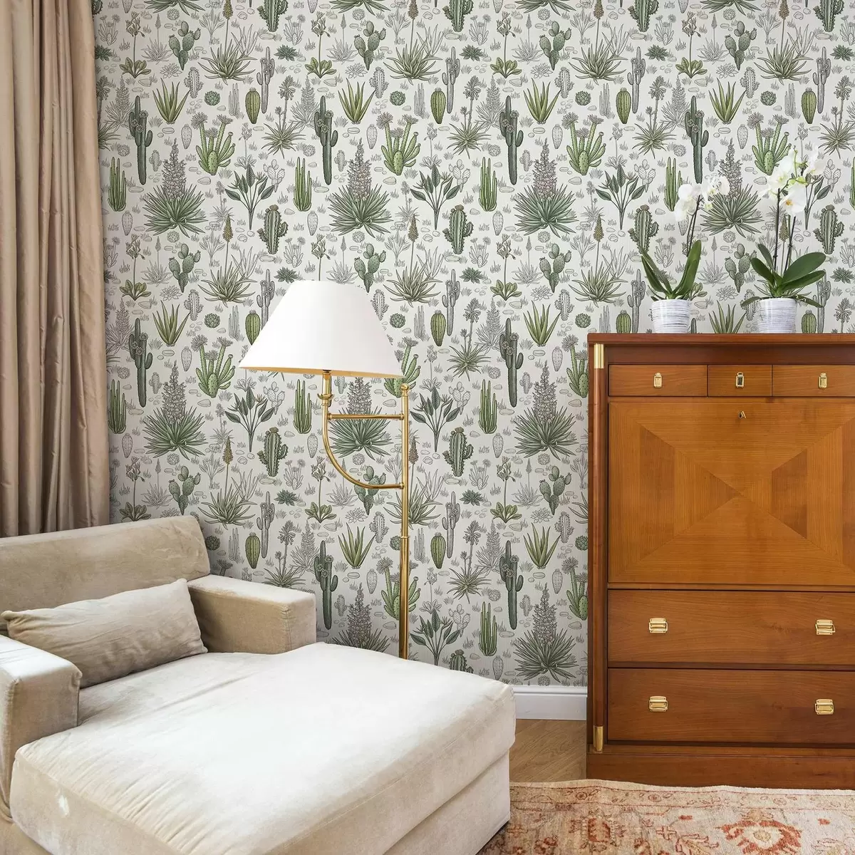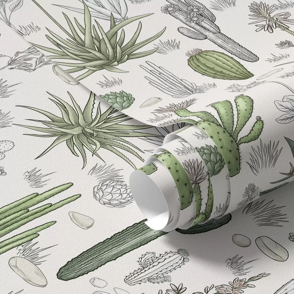 Wallpapers Cacti and succulents on a light background, linear style Nr. a00666v1