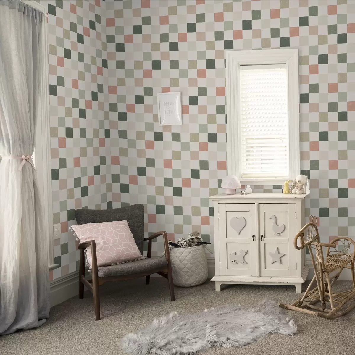 Wallpapers Soft plaid in pastel green, pink and beige tones Nr. a00676