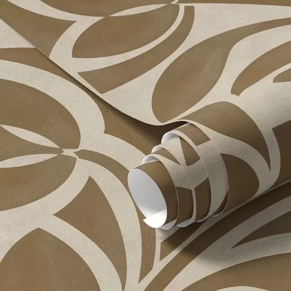 Wallpapers Geometric leaf silhouettes, caramel-brown on beige Nr. a00679
