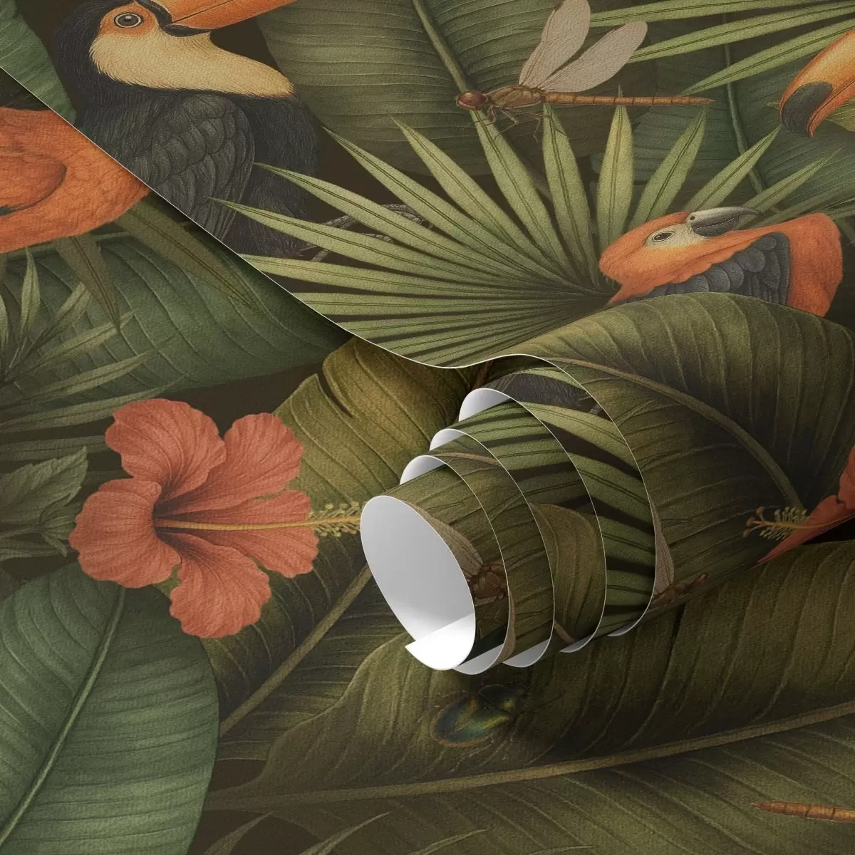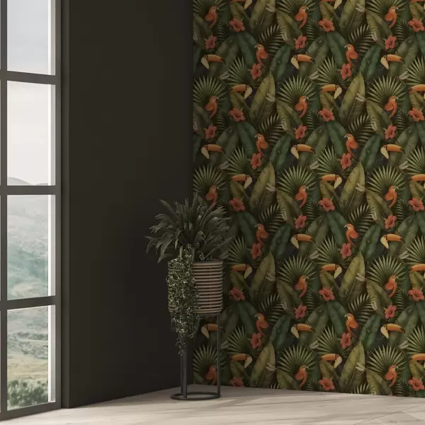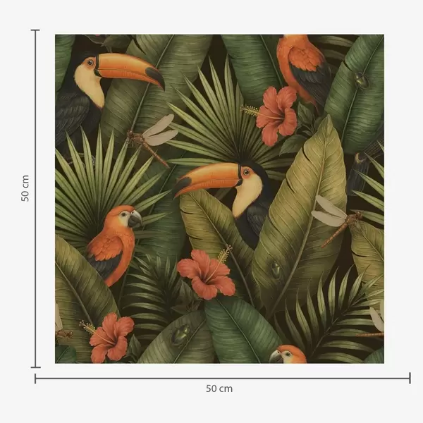 Wallpapers Toucan and parrots among tropical foliage and flowers Nr. a00702