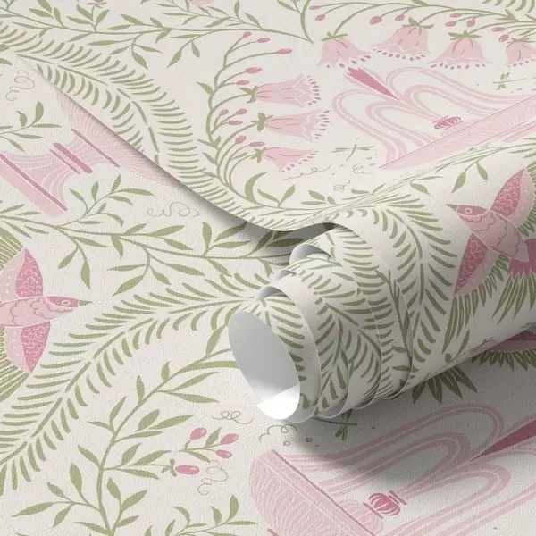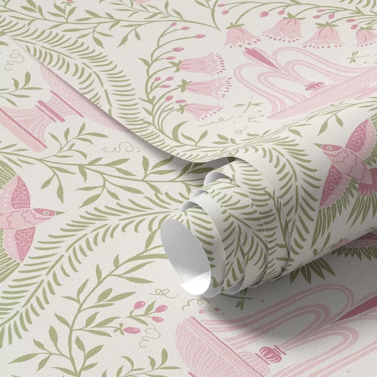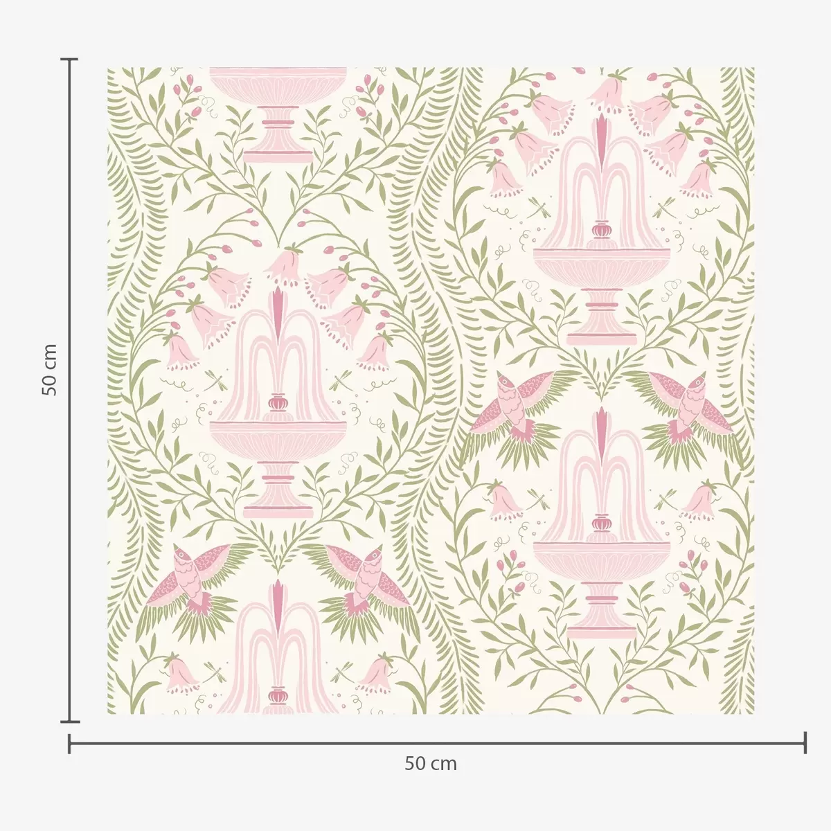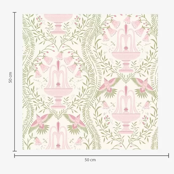 Wallpapers Fountains, hummingbirds and green scrolls on a light background Nr. a00723