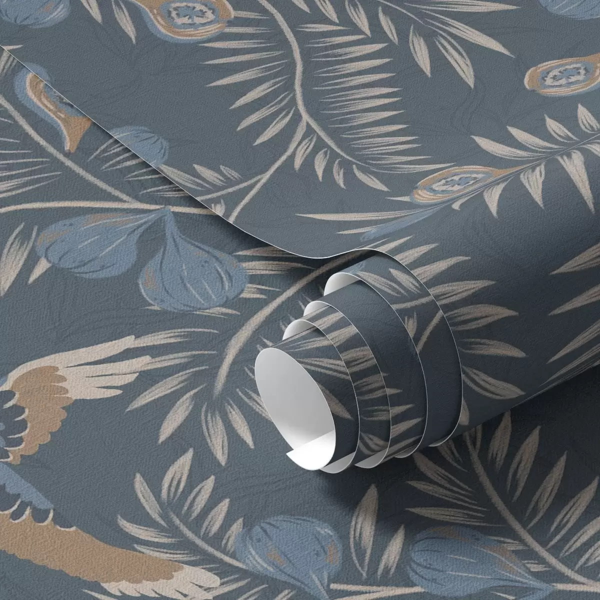 Wallpapers Bird among blue fruits and palm leaves, indigo Nr. a00726
