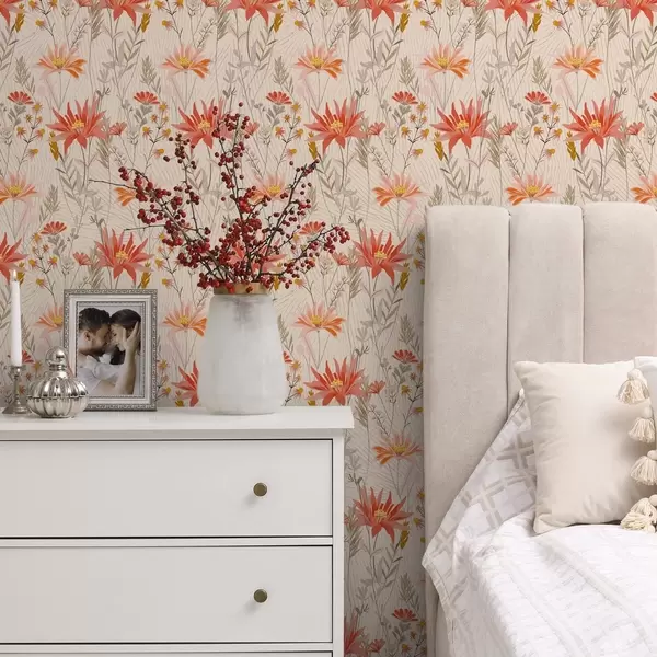 Wallpapers Wildflowers in warm tones on beige background Nr. a00751