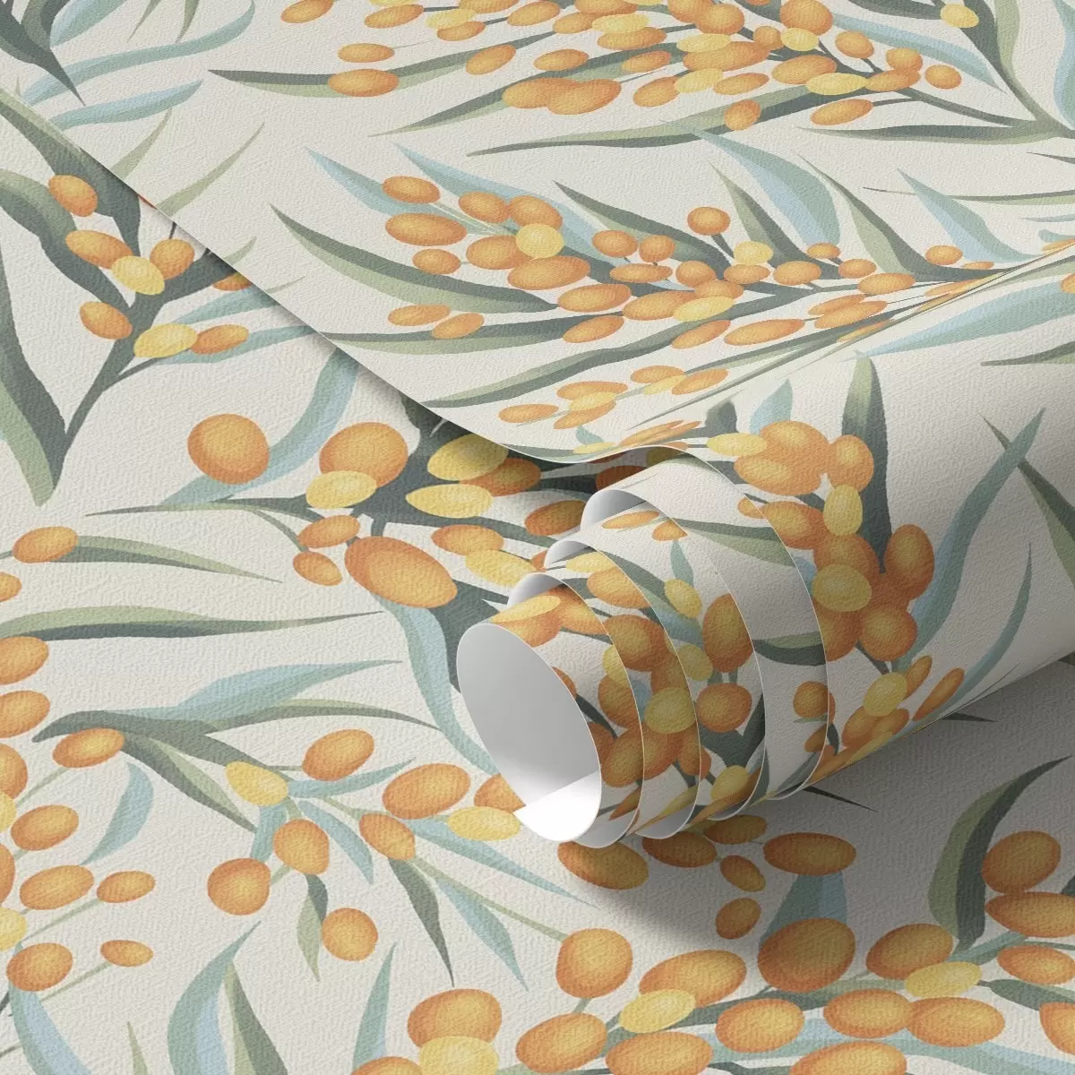 Wallpapers Sea buckthorn branches with orange berries, light background Nr. a00792