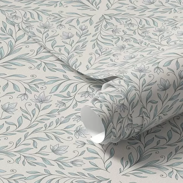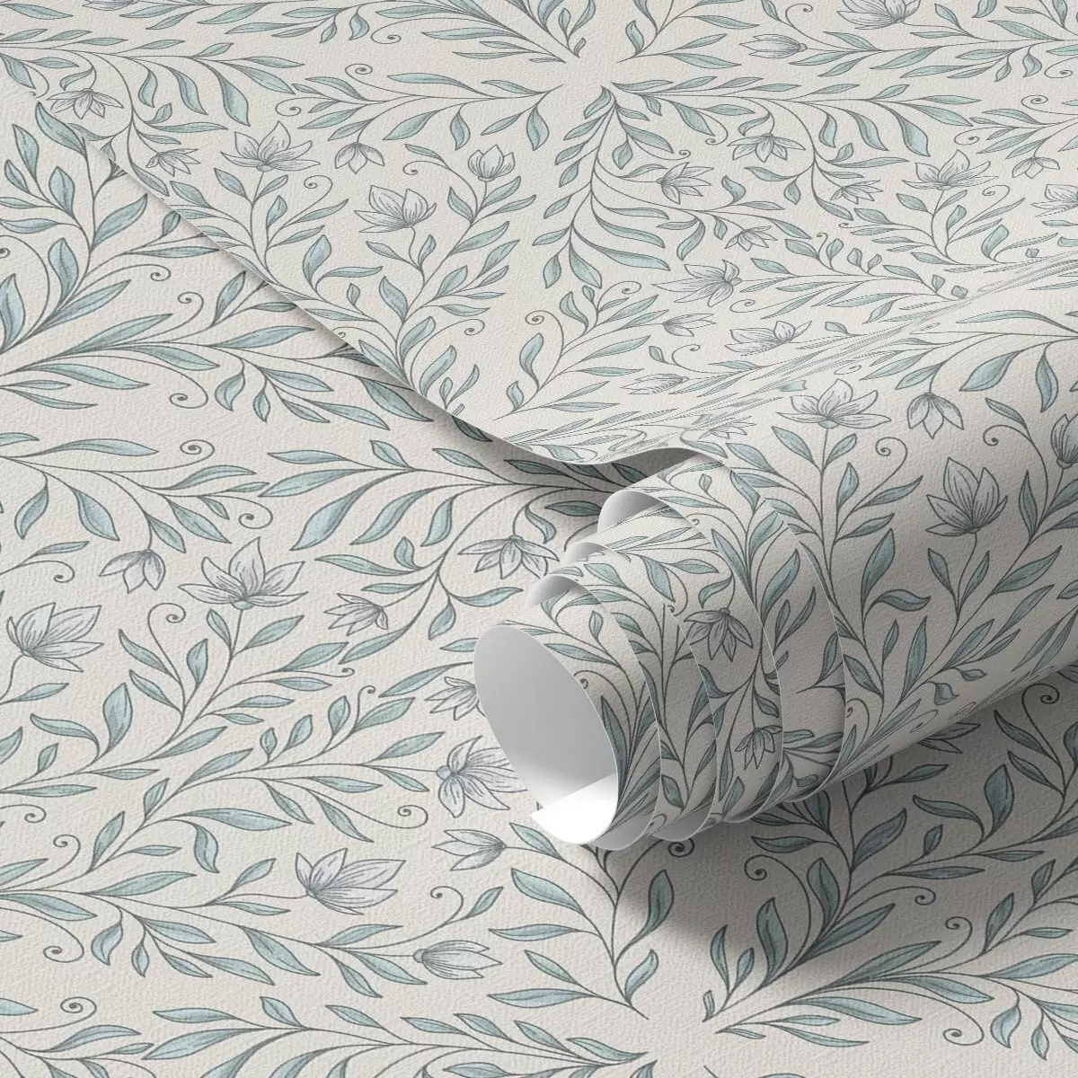 Wallpapers Lacy shoots on cream-white with turquoise outline Nr. a00815v4