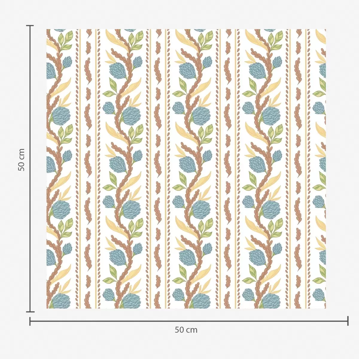 Printed to order and delivered in rolls up to 50 cm wide.
