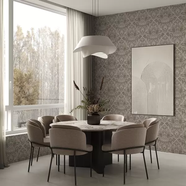 Wallpapers Damask in warm gray-brown tones on light ground Nr. a00826v3