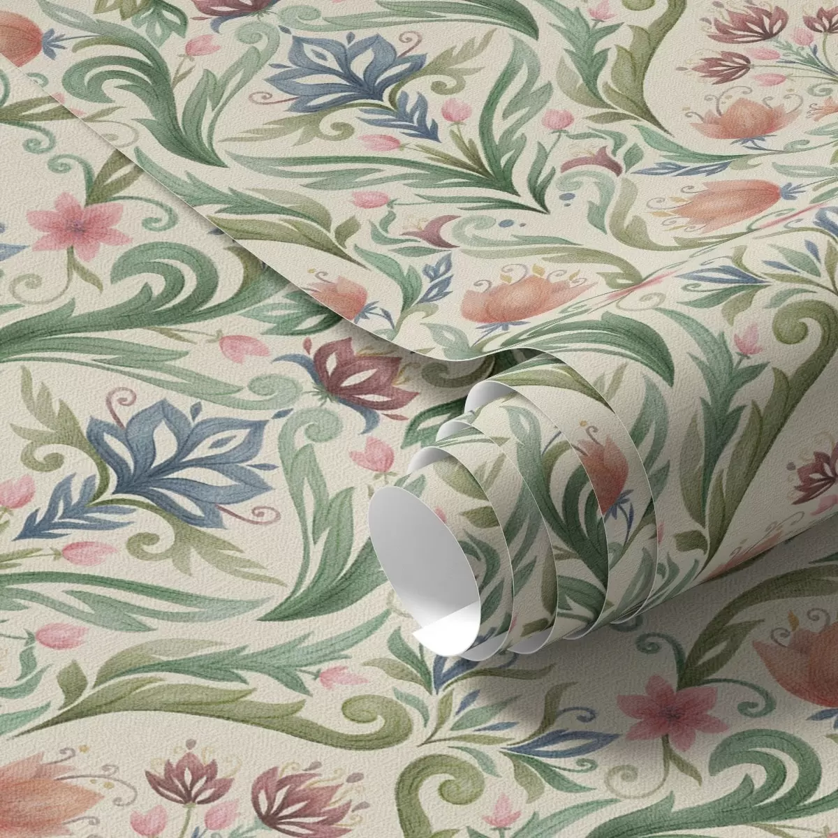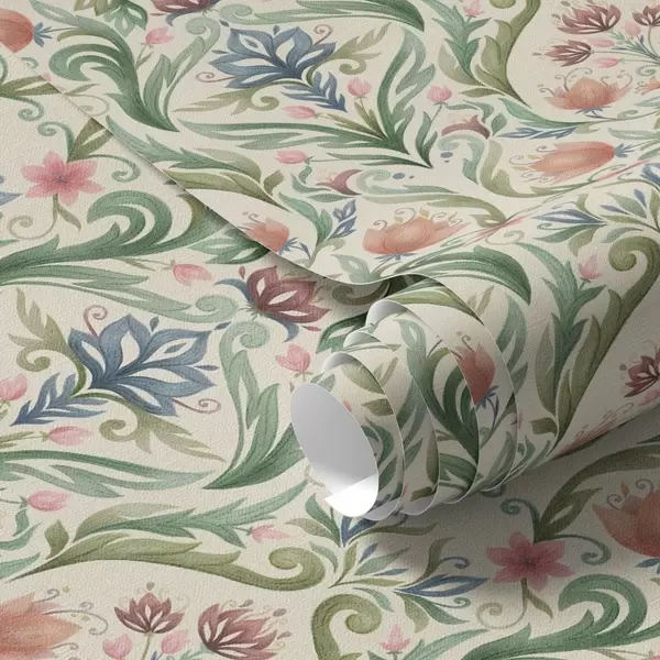 Wallpapers Symmetrical floral ornament, terracotta and green Nr. a00827