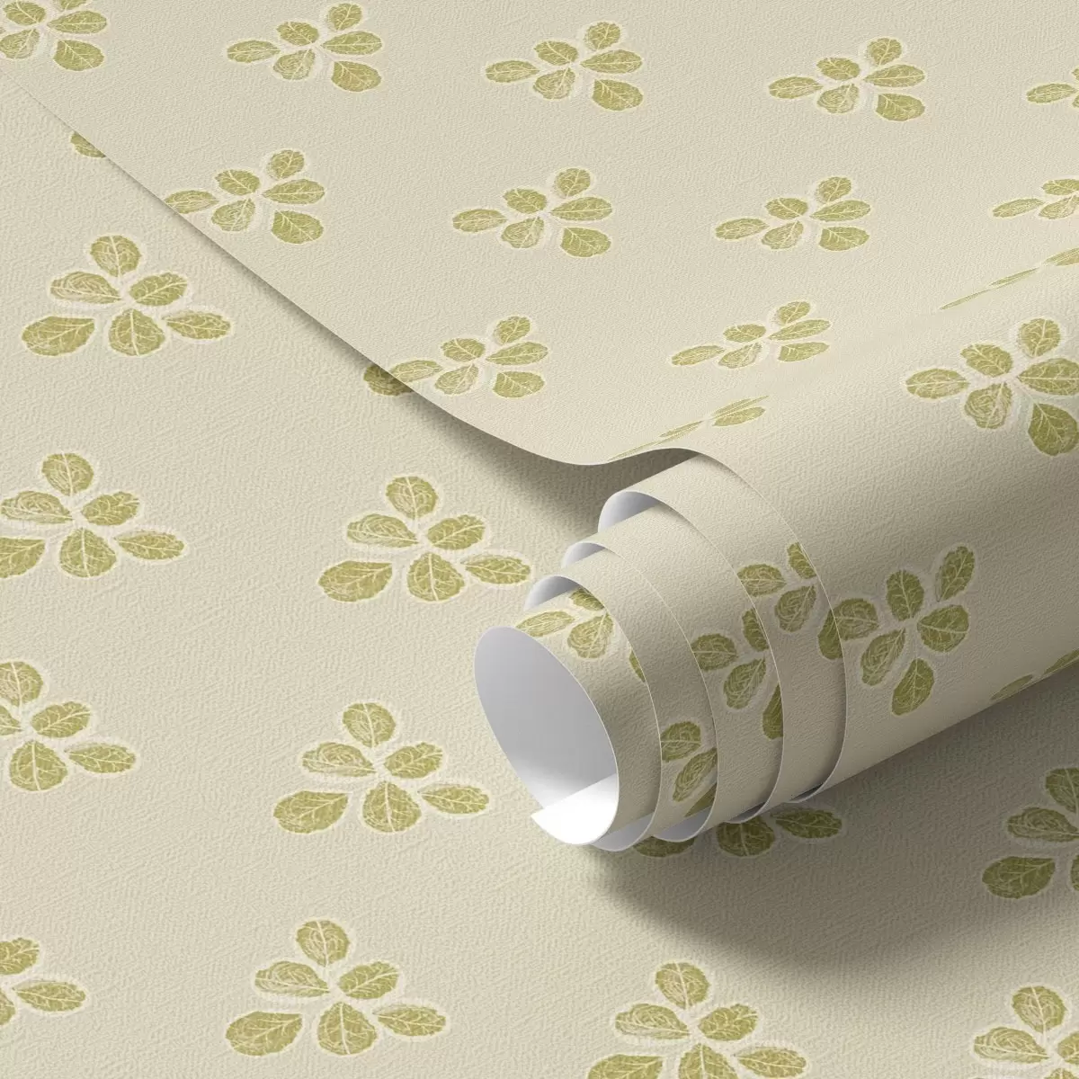 Wallpapers Small repeat: trios of leaves on cream-beige Nr. a00848