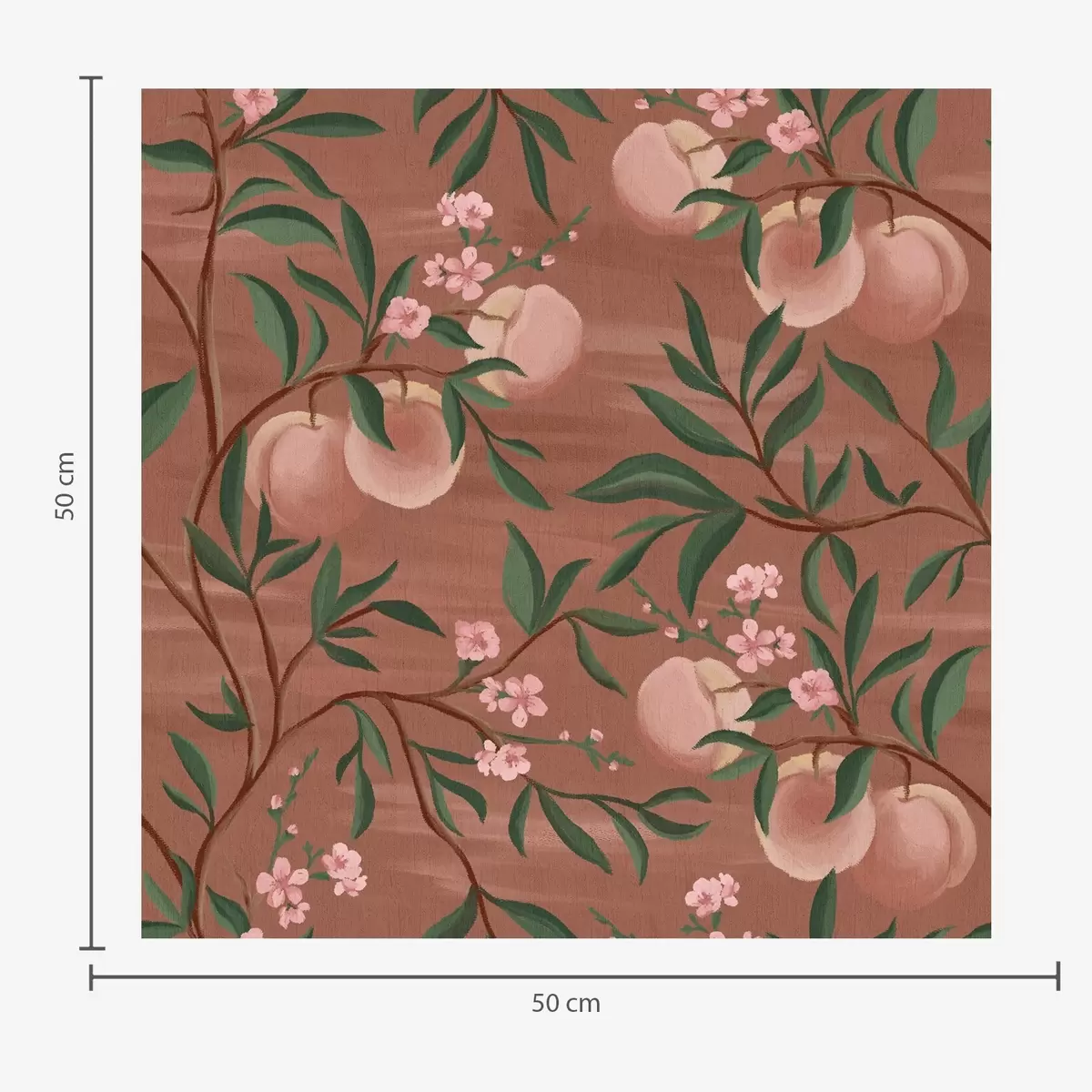 Wallpapers Peaches on branches with pink blossom, terracotta ground Nr. a00856