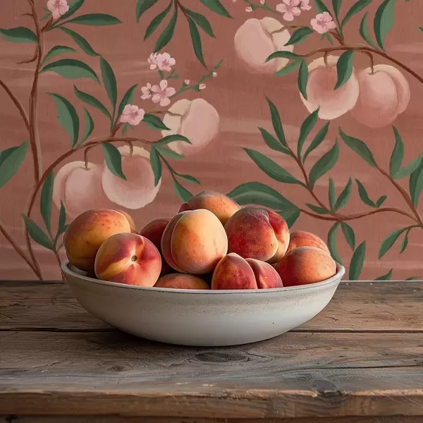 Wallpapers Peaches on branches with pink blossom, terracotta ground Nr. a00856