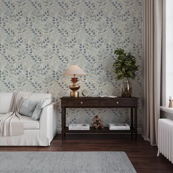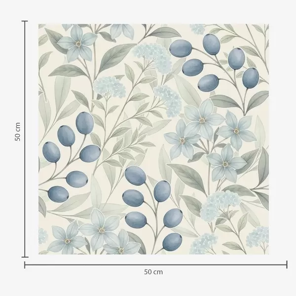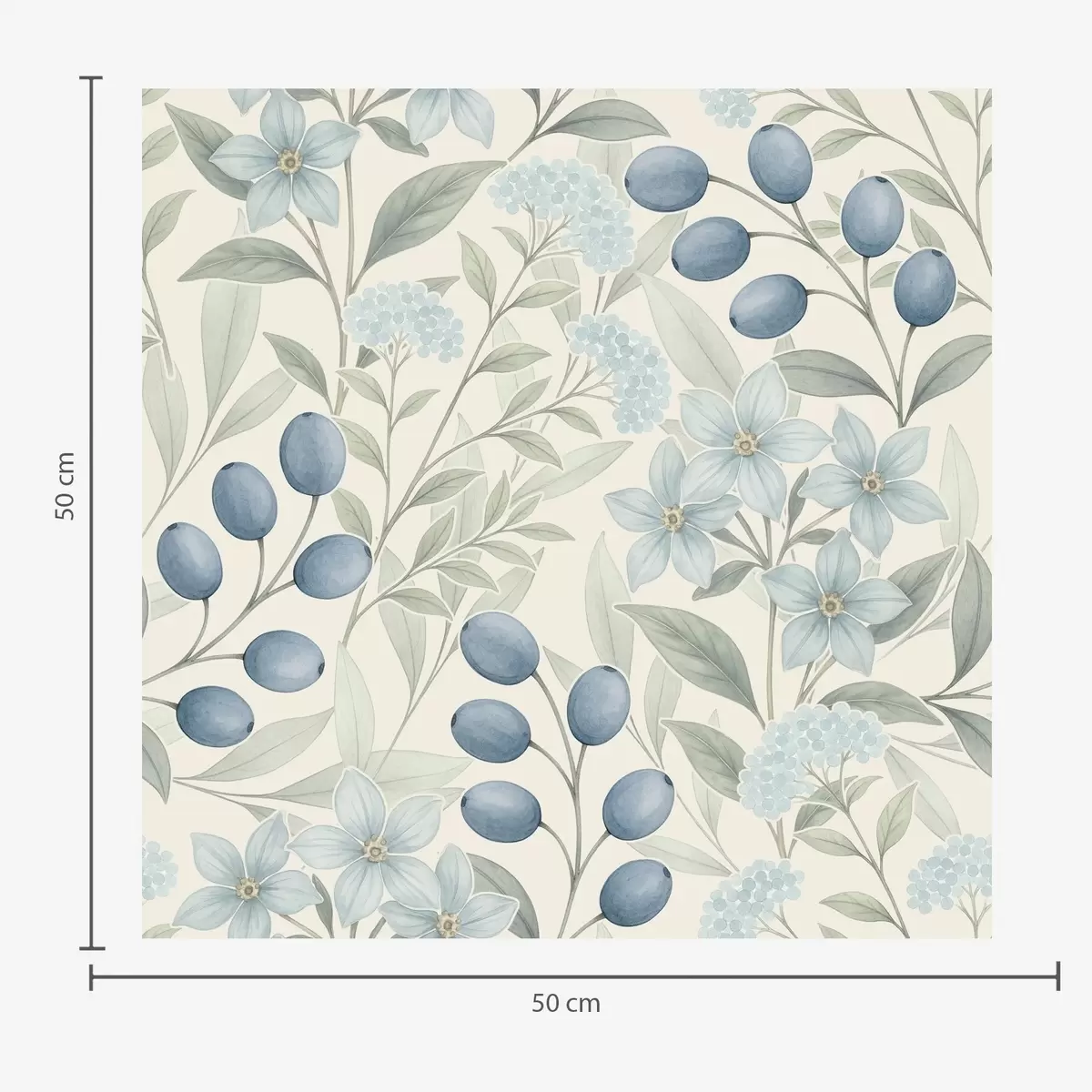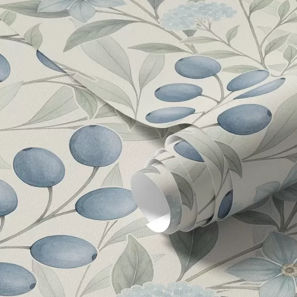 Wallpapers Blue berries and light flowers on ivory Nr. a00872