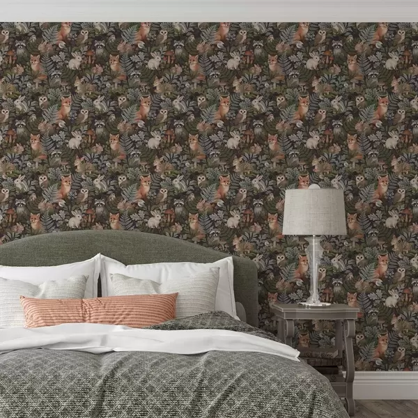 Wallpapers Woodland animals and ferns on deep charcoal Nr. a00880