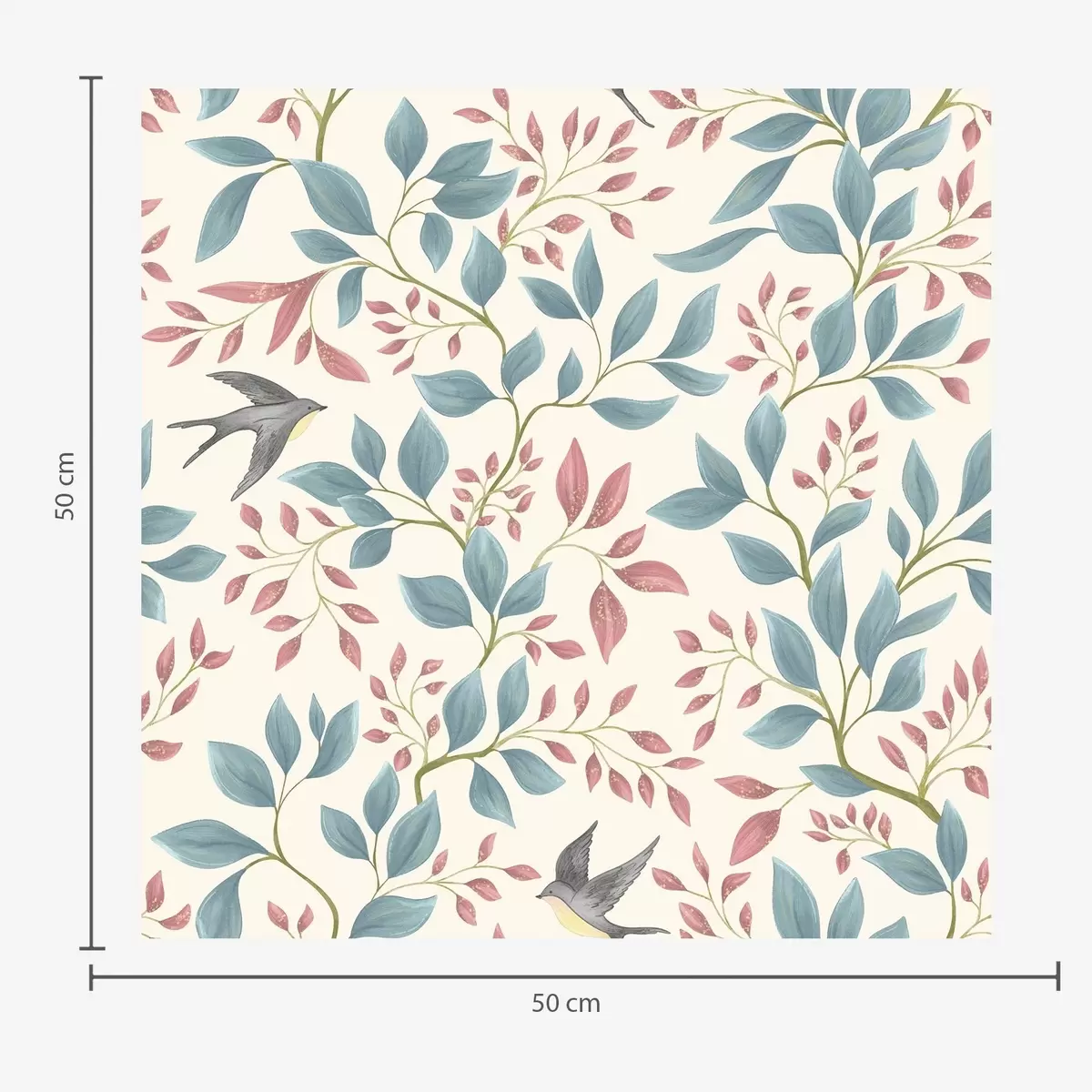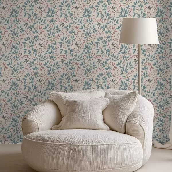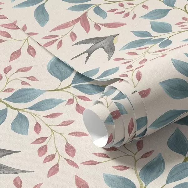 Wallpapers Blue and pink branches with birds on a cream background Nr. a00933