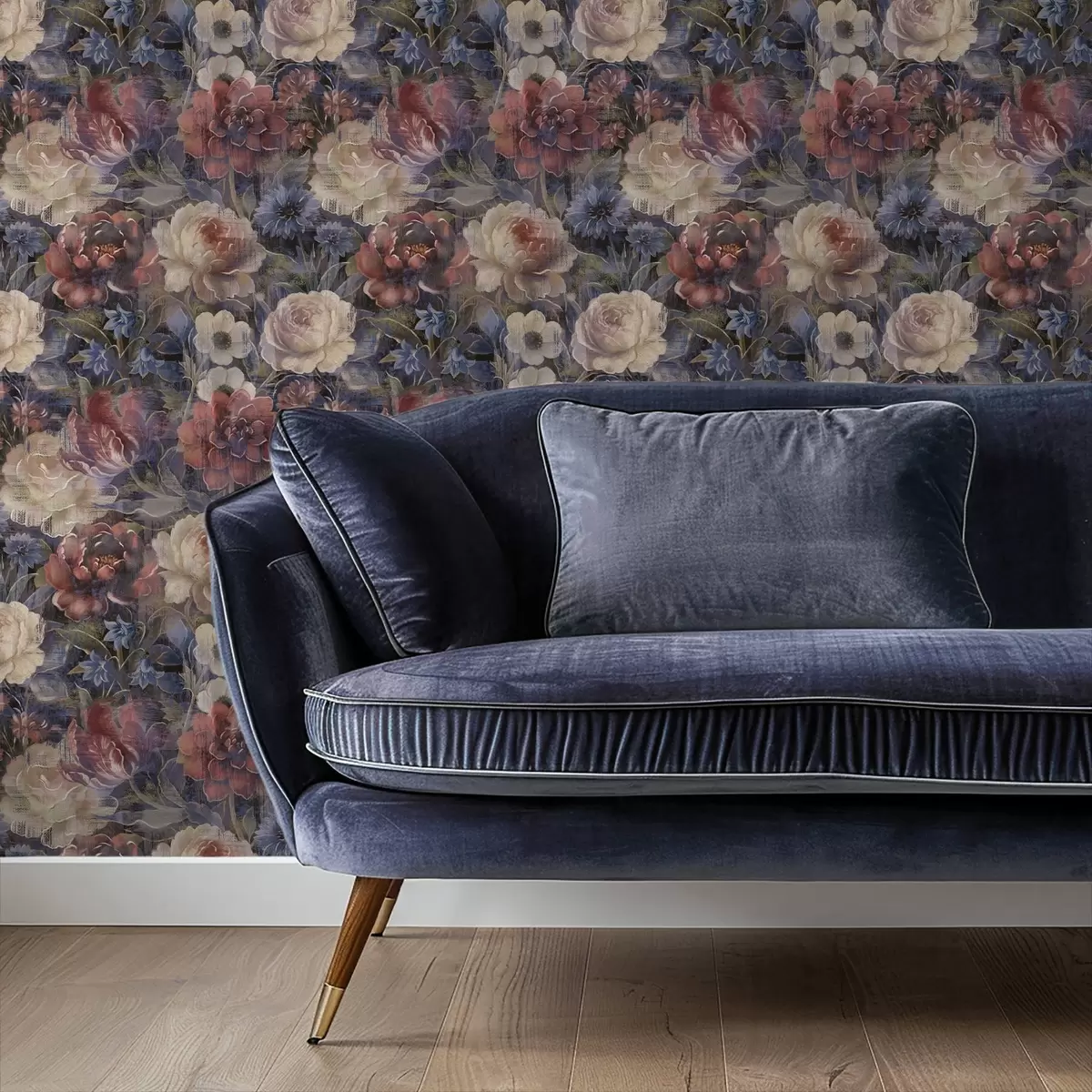 Wallpapers Painterly bouquet of large flowers on deep indigo background Nr. a01021