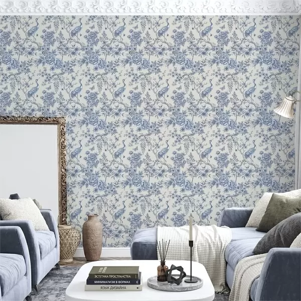 Wallpapers Blue floral ornament with bird and branches Nr. a01132